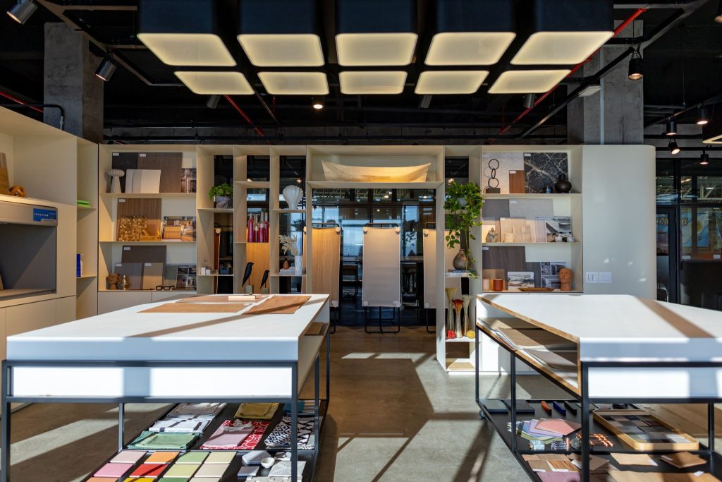Trata-se de um espaço flexível e modular, projetado para se adaptar a cada novo briefing. Ali, marcas, arquitetos e designers encontram um ambiente para experimentar possibilidades, testar combinações de acabamentos e desenhar soluções únicas.